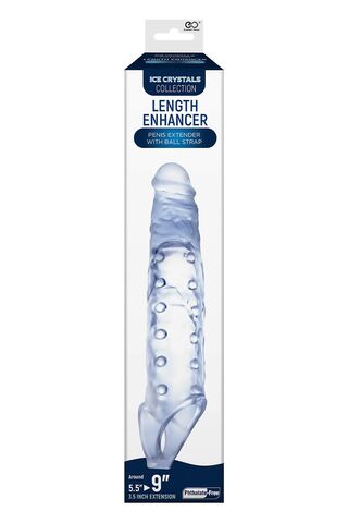 Прозрачная насадка-удлинитель Length Enhancer с подхватом. Эластичная и приятная на ощупь. Длина полости - 13,9 см.