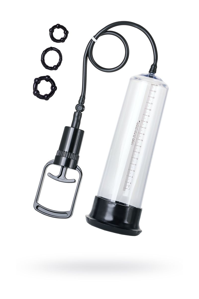 A-Toys Vacuum pump — серия помп, созданная для мужчин, которые стремятся к новым победам и точно знают чего хотя. Регулярное применение помп Atoys способствует увеличению размеров полового члена и усиливает эрекцию. Высокое качество материалов, используемых при производстве помпы, сделают применение изделия приятным и безопасным. Помпа оснащена мощным насосом. В комплекте: вакуумная помпа, 3 эрекционных кольца.