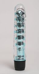 Необычный вибромассажёр имеет классическую форму. Необычайно приятный, прозрачный материал, вибратор оснащен дополнительными пупырышками под головкой для особенных ощущений. Степень вибрации регулируется при помощи кнопки, расположенной в основании.
