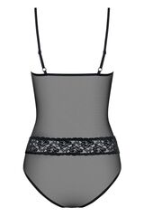 Полупрозрачное элегантное боди, зона декольте украшена жемчужинками, низ боди на застежке.