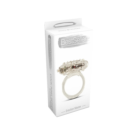 Прозрачное эрекционное виброкольцо VIBRATING COCK RING ERECTION MASTER. Батарейки в комплекте.
