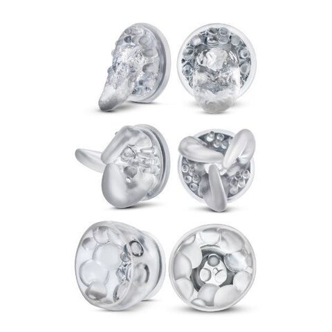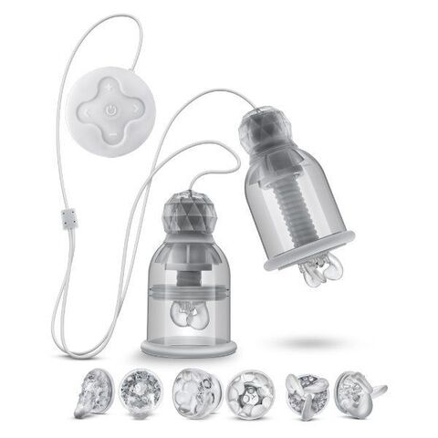 Прозрачные вибронасадки на соски со сменными колпачками Titillator. Можно менять колпачки - 3 вида в комплекте: язычки, шишечки и клешни. Управление вибрацией происходит при помощи проводного пульта. Длина цилиндров - 10,8х5,7 см.