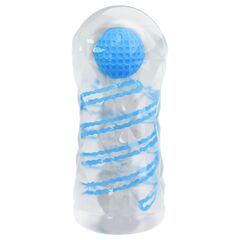 Прозрачный эластичный мастурбатор с голубым шариком.