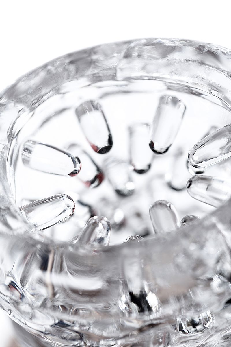 2. Сначала введите головку члена в отделение массажера с ресничками. Легкими вращающими движениями помассируйте только головку.