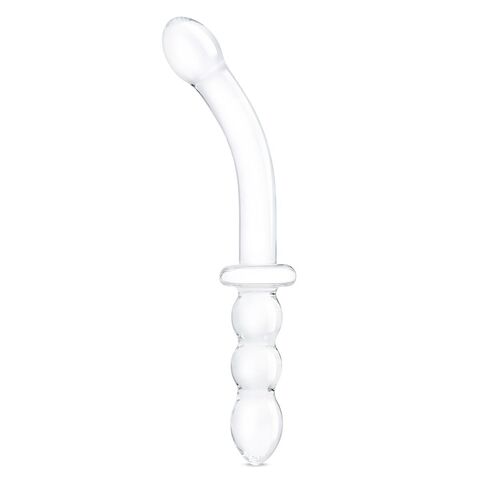 Окунитесь в мир удовольствий с стеклянным двенадцатидюймового дилдо Glas Girthy Ribbed G-Spot, который имеет два конца четкой формы, способные удовлетворить любые ваши потребности. Гладкий изогнутый конец имеет каплевидный наконечник для нацеливания и воздействия на точку G. На противоположном конце серия чувственных бусин усиливает ваши ощущения, обещая волны чувственного удовольствия. Эта часть отлично подойдет для анальной стимуляции. Эта стеклянная игрушка, изготовленная из безопасного для тела гипоаллергенного стекла, легко чистится, обеспечивая удобство и гигиену, а гигиеничный материал также можно использовать для температурных игр, ожидающих вашего исследования — просто нагрейте или охладите фаллоимитатор, чтобы расширить свои сенсорные приключения. Совместим со всеми смазками, на любых основах (водной, силиконовой, масляной или гибридной). После использования стимулятора промойте его с любым подходящим моющим средством, и уберите на хранение в сатиновый белый мешочек с логотипом, который вы найдете в комплекте с интимной игрушкой. Рабочая длина изогнутой части - 15,9 см, диаметр - 3,4 см.