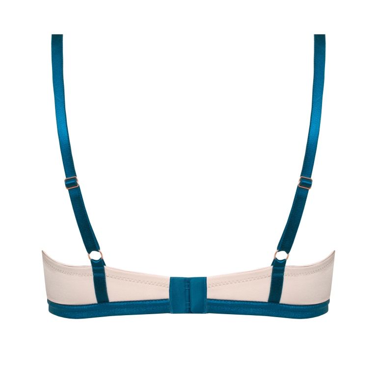 Бюстгальтер Eleni: чашки формованные, с несъёмным силиконовым пуш-апом, на косточках, с дополнительными боковыми поддержками, внешняя сторона покрыта кружевом. Бретельки контрастного цвета пришиты, регулируются по длине. На спине застёжка на удлинитель, количество крючков в ряду застёжки увеличивается пропорционально размеру бюстгальтера.