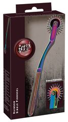 Прочное металлическое колесо Вартенберга Rainbow Single Pinwheel в мерцающих мультихромных цветах. Оно проходит по коже с большим или меньшим давлением, вызывая либо легкие стимулирующие ощущения, либо сильную приятную боль. Колесо усеяно маленькими, очень острыми шипами и может использоваться в любом месте тела. Диаметр колесика - 3 см.