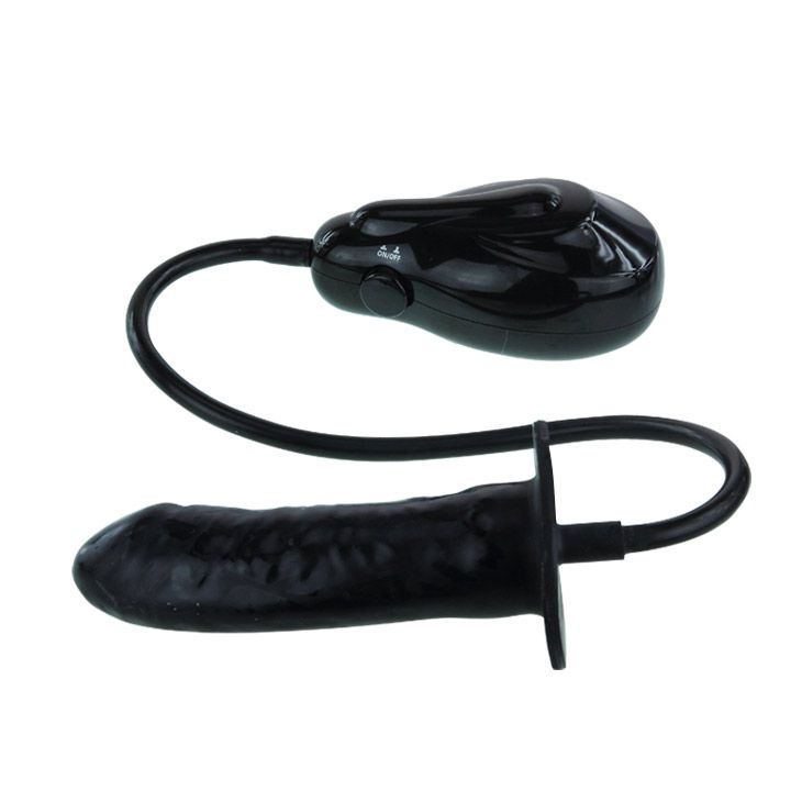 Суперреалистичный вибратор черного цвета высоко оценят поклонники анальных ласк. Высококачественный вибростимулятор с загнутой головкой оснащен автоматическим нагнетателем воздуха. Стоит нажать кнопку на пульте, и диаметр фаллоса значительно увеличится.