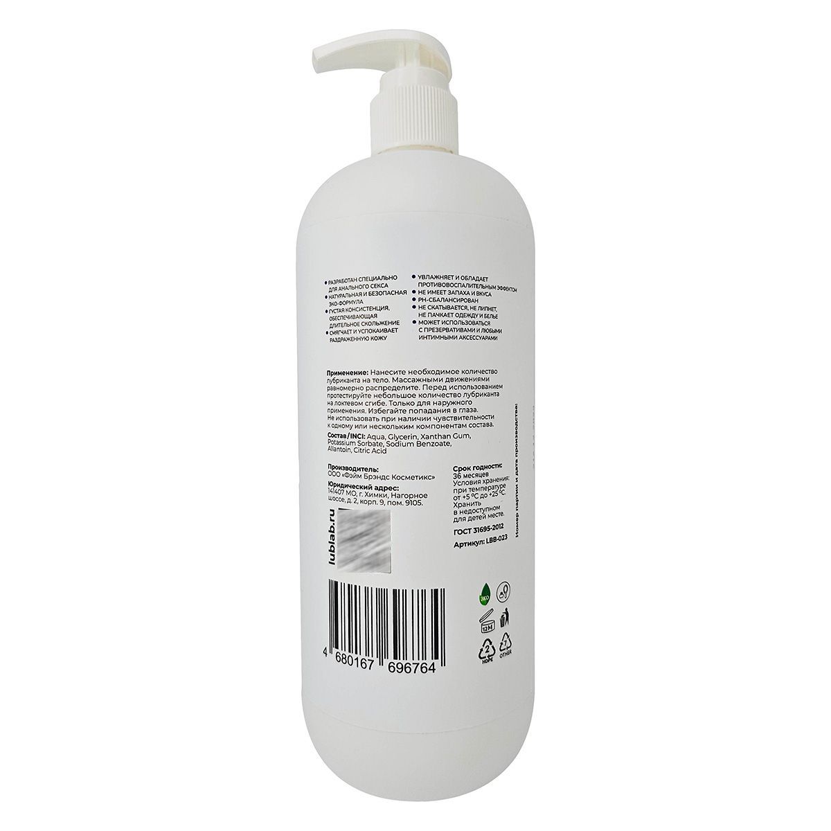 Интимный лубрикант с натуральной и безопасной ЭКО-формулой разработан специально для анального секса. Обладает густой консистенцией, обеспечивающей длительное скольжение. Прозрачный гель абсолютно не имеет запаха и вкуса. Смягчает и успокаивает раздраженную кожу, благодаря входящему в состав аллантоину. Увлажняет и обладает противовоспалительным эффектом. Регенерирует и заживляет микро-трещинки. Не скатывается, не липнет, не пачкает одежду и белье, PH-сбалансирован. Может использоваться с презервативами и любыми интимными аксессуарами.