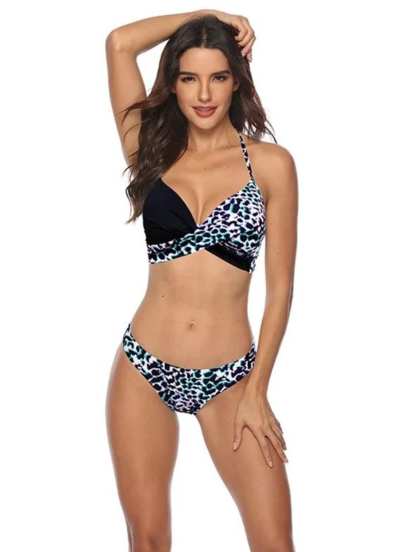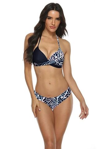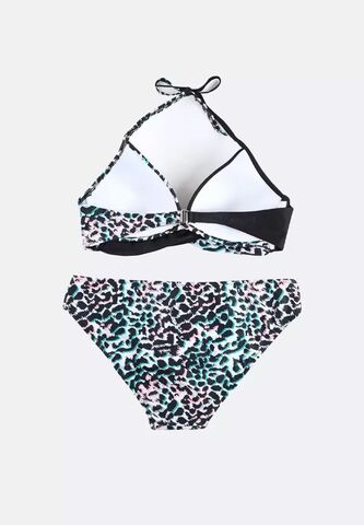 Раздельный купальник с анималистическим принтом и цветными пятнышками. Купальник выполнен из мягкого, быстро сохнущего полотна с принтом. Состоит из бюстгальтера и трусов. Бюстгальтер с формованными чашками без косточек. Обеспечивает комфортную, мягкую посадку. Бретели завязываются вокруг шеи. Застёжка сзади. Трусы средней посадки. В комплекте: лиф, плавки.
