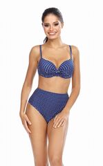 Раздельный купальник, из ткани тактель. Бюстгальтер с формованными эластичными чашками, со съемными пуш-ап вкладышами в размерах B, C, с дополнительными боковыми поддержками, на косточках, бретельки регулируются по длине, на спине отстёгиваются, на спине застёжка. Трусики слип на стрейч-подкладке, с высокой посадкой. В комплекте: лиф, плавки.