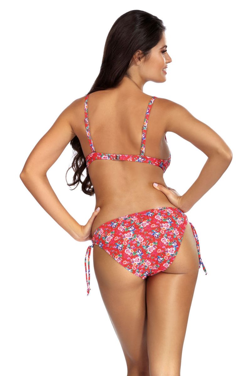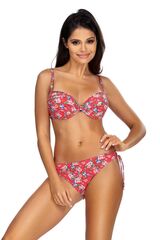 Раздельный купальник. Бюстгальтер с формованными чашками, на косточках, с пуш-ап вкладышами, бретельки регулируются по длине, отстёгиваются на спине, на спине застёжка. В зоне декольте съёмная декоративная бретель, положение которой регулируется. Трусики слип на стрейч-подкладке с тонкими завязками по бокам. В комплекте: лиф, плавки.