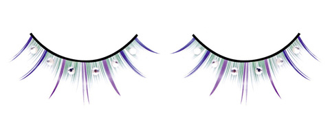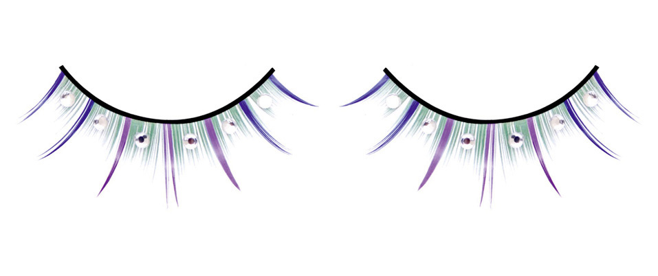 Легкомысленные ресницы ручной работы, выполненные в синем, лиловом и зеленом цветах, с белыми кристаллами. Идеальны для выхода, привлечения внимания и флирта. В комплект входит клей для легкого и комфортного прикрепления ресниц.