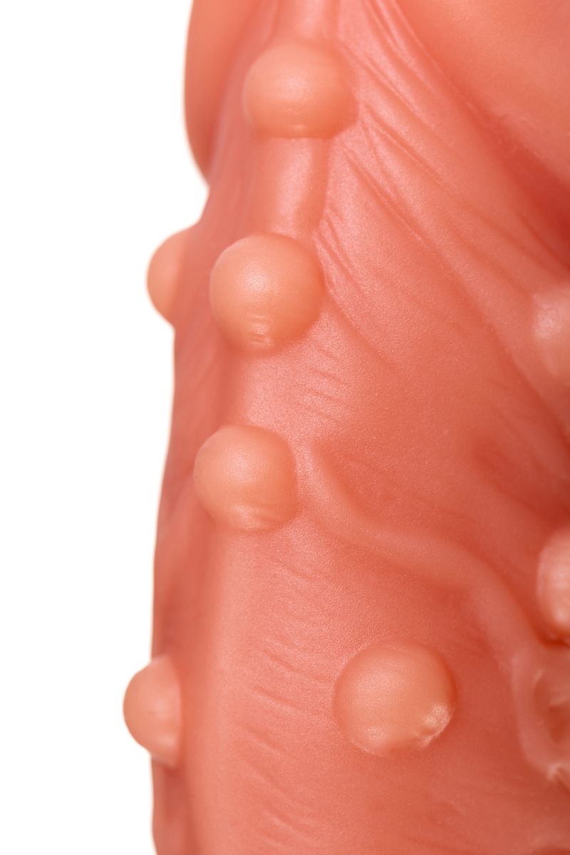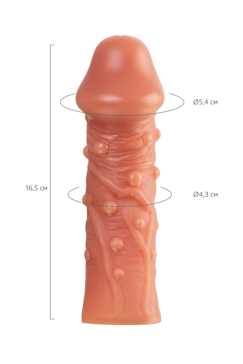Насадка очень эластичная, имеет узор по всей поверхности, для стимуляции эрогенных зон партнера, увеличивает толщину головки и ствола пениса.