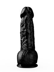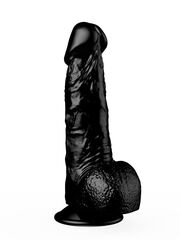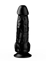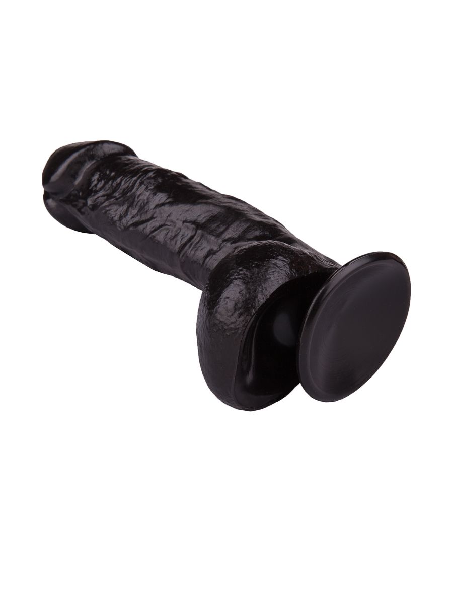 Реалистичный чёрный фаллоимитатор на присоске - 17,8 см.