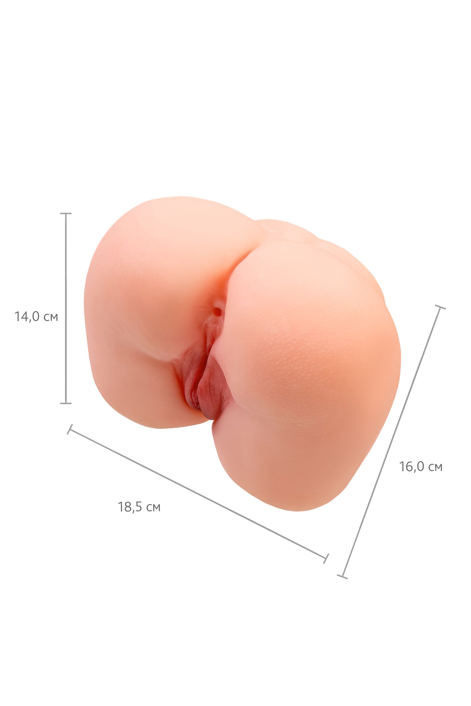Упругая попка весом 3,1 кг - то, что приятно ощущать в сильных мужских руках.Шелковистый материал напоминает мягкую женскую кожу.Для секса предусмотрено 2 анатомических отверстия с дополнительной стимуляцией: вагинальное и анальное. Размеры - 18,5 х 16 х 14 см.