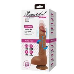 Этот вибратор из TPR сочетает 5 режимов вибрации, вращения и фрикции. Реалистичная текстура с головкой, венами и яичками для естественных ощущений. Присоска для свободных рук. Заряжается через USB. Рабочая длина - 18 см.
