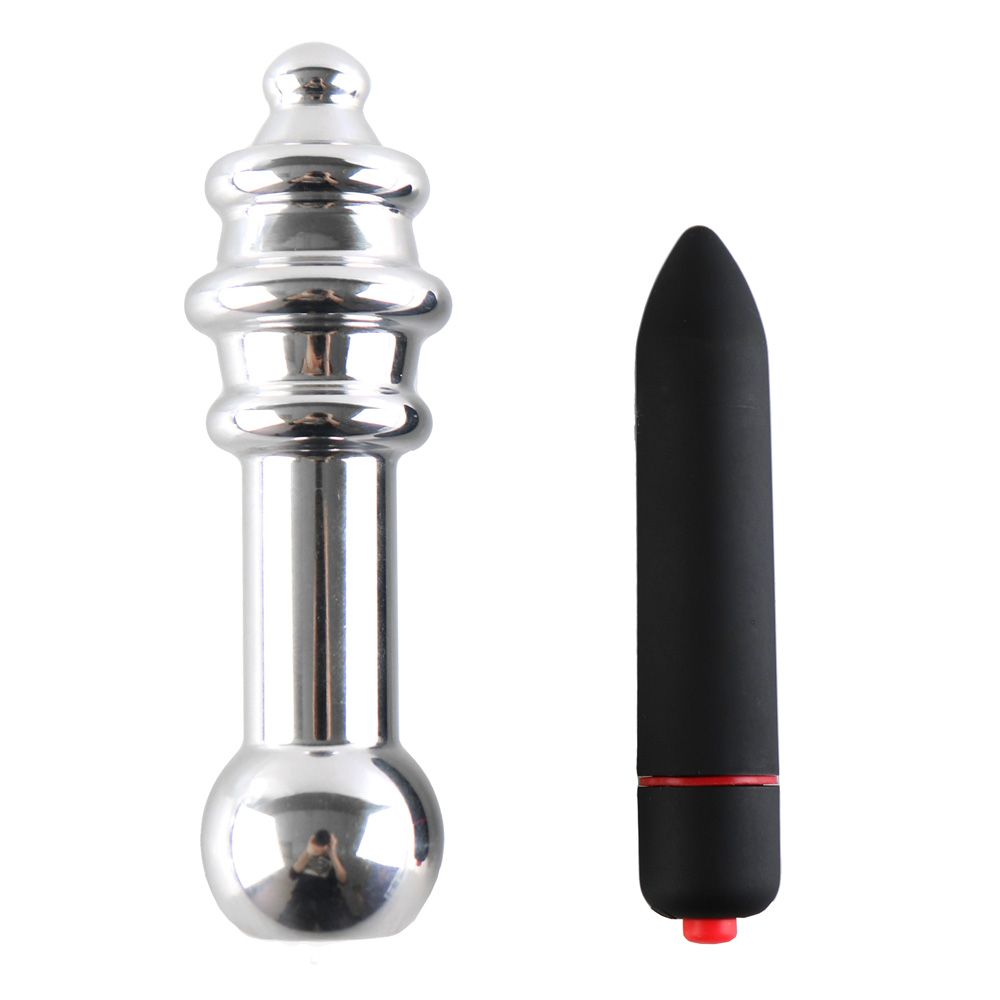 Ребристая анальная пробка NH T1 с вибрацией. Съемный виброэлемент. 7 режимов вибрации.