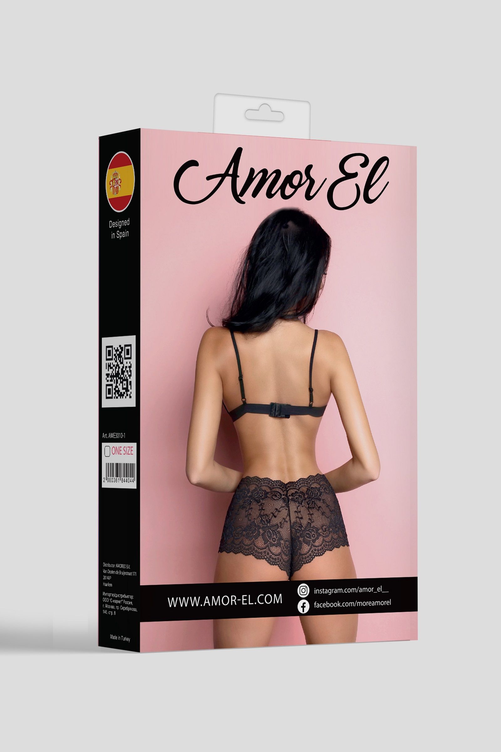 Классический кружевной комплект, состоящий из лифа без косточек и высоких шортиков. В комплекте: лиф, шорты.