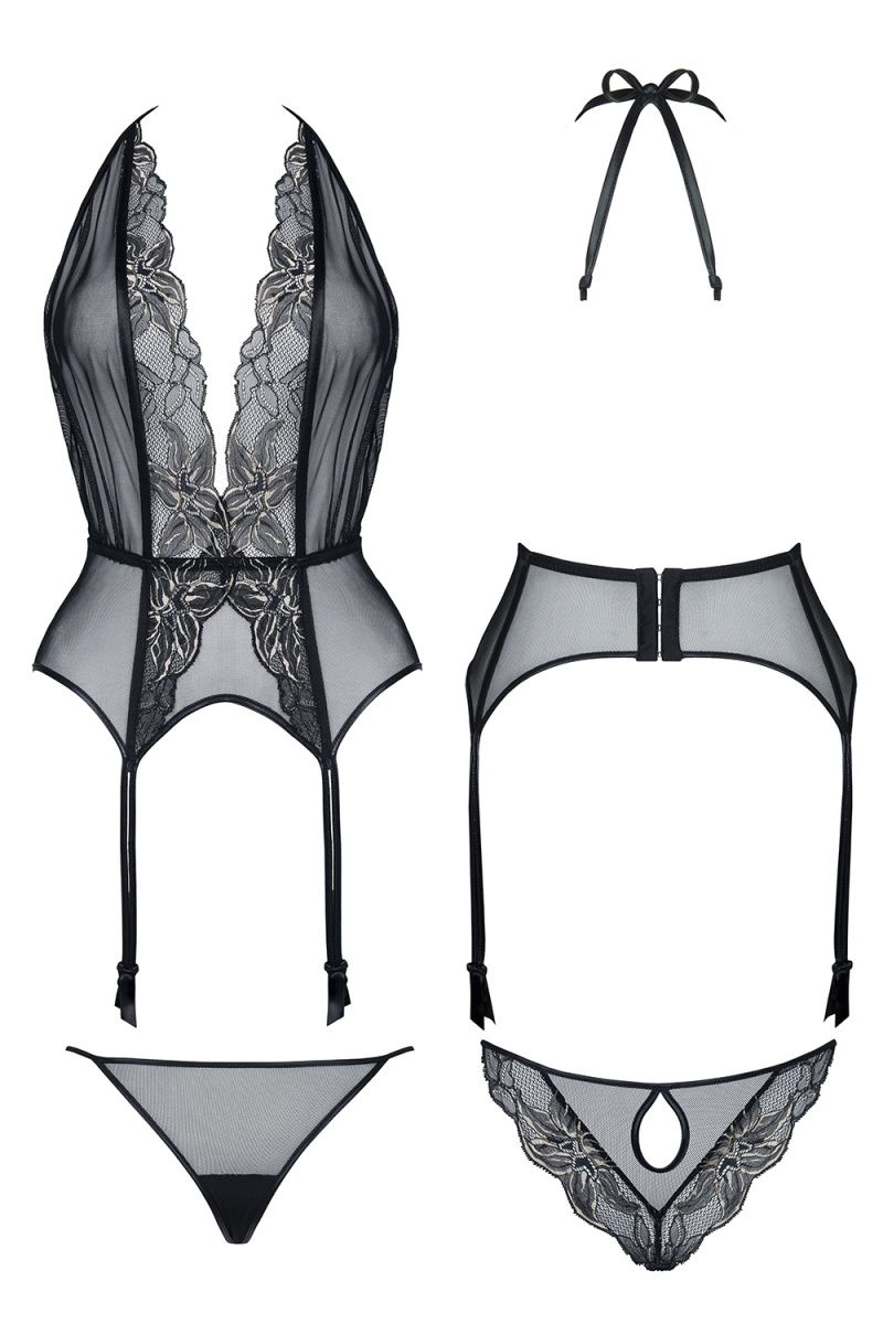 Роскошный корсаж Penelope с цветочным кружевом. В комплекте: корсаж, трусики.