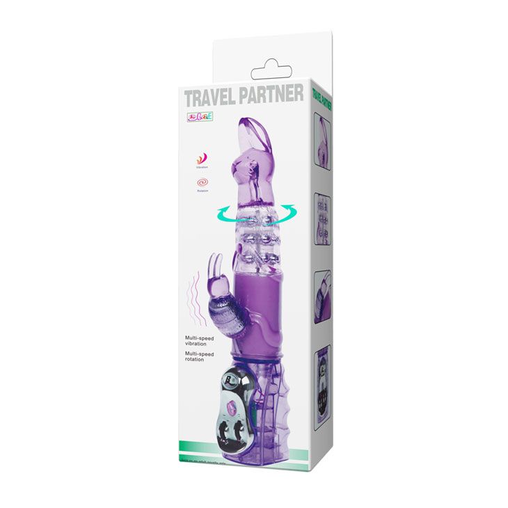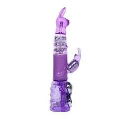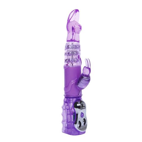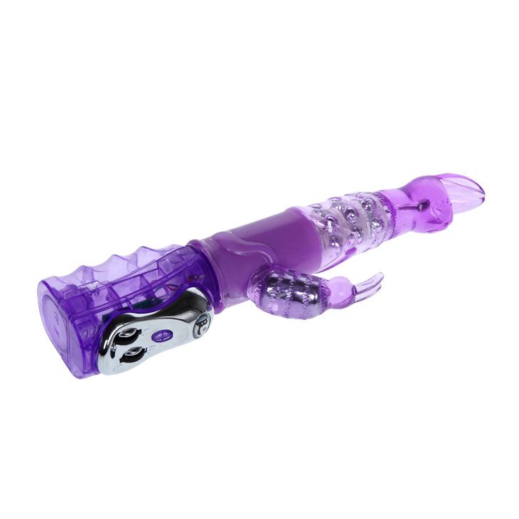 Мультискоростной рельефный вибромассажер розового цвета с функциями вращения ствола и мощным клиторальным стимулятором в форме зайчика. Имеет несколько скоростей вращения ствола, с возможностью менять направление, несколько скоростей вибрации стимулятора, все функции удобно регулируются колесиками на ручке.
