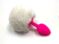 Розовая анальная пробка размера S с пушистым белым хвостиком зайки