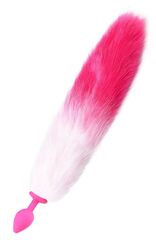 Розовая анальная пробка с длинным бело-розовым хвостом