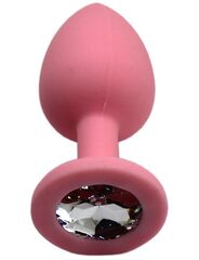 Анальная эргономической формы пробка с переливающимся стразом на основании — это изящный способ разнообразить интимные моменты вашей близости и приятный подарок для партнёра. Пробка изготовлена из медицинского силикона, бархатистая и упругая.