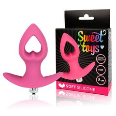 Розовая анальная вибровтулка-сердечко с ограничителем - 8 см.