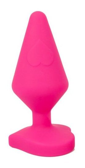 Розовая коническая анальная пробка с сердечком-ограничителем - 10 см.