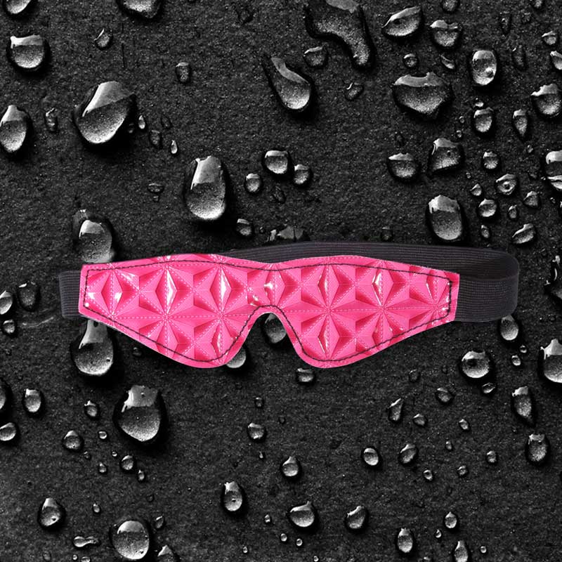 Стильная маска на глаза розового цвета с формовым рисунком на виниле. Держится за счет широкой, мягкой эластичной резинки. Подходит для длительного ношения. Размер маски - 19х6 см.