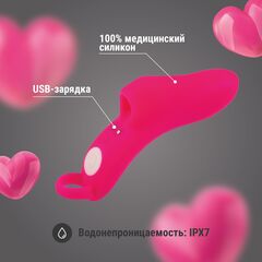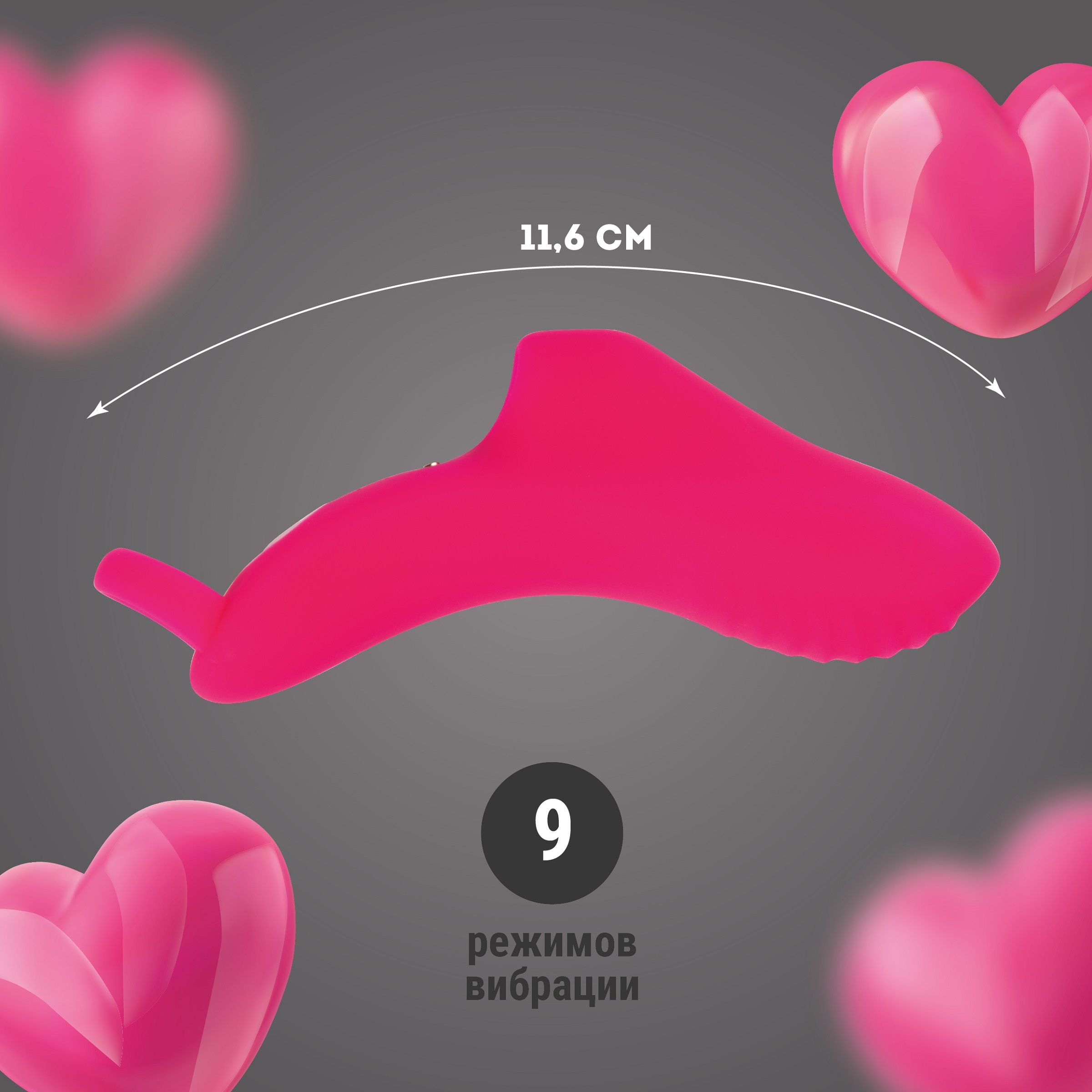 Розовая перезаряжаемая вибронасадка на палец. 9 режимов вибрации. Водонепроницаемость IPX7 означает, что устройство можно погружать на глубину в воду до 1 метра на полчаса. Возбуждающего розового цвета. Пальчиковым вибратором можно стимулировать самые разные эрогенные зоны на своем теле или теле партнера. Изделие выполнено из качественного гипоаллергенного материала, который безопасен в использовании. Нежное покрытие обладает мягким и приятным тактильным эффектом при касании. Используйте смазку на водной основе для максимального комфорта и гладкости.