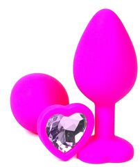 Розовая силиконовая пробка с сиреневым кристаллом-сердечком - 9,5 см.