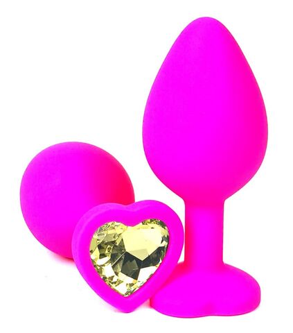 Розовая силиконовая пробка с желтым кристаллом-сердцем - 10,5 см.