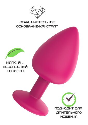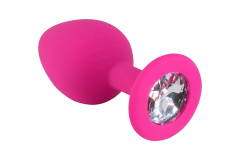 Розовая средняя силиконовая пробка с прозрачным кристаллом