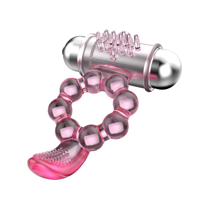 Розовое эрекционное кольцо с вибростимуляцией клитора Baile