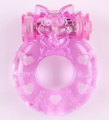 Эрекционное кольцо с вибрацией в виде мордочки кролика. Выполнено из ПВХ. Растягивается до нужных размеров. Внутренний диаметр - 1,5 см.