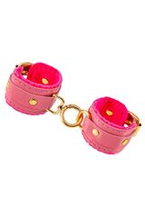 Розовые двуслойные кожаные наручники-браслеты