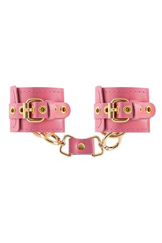 Розовые однослойные кожаные наручники