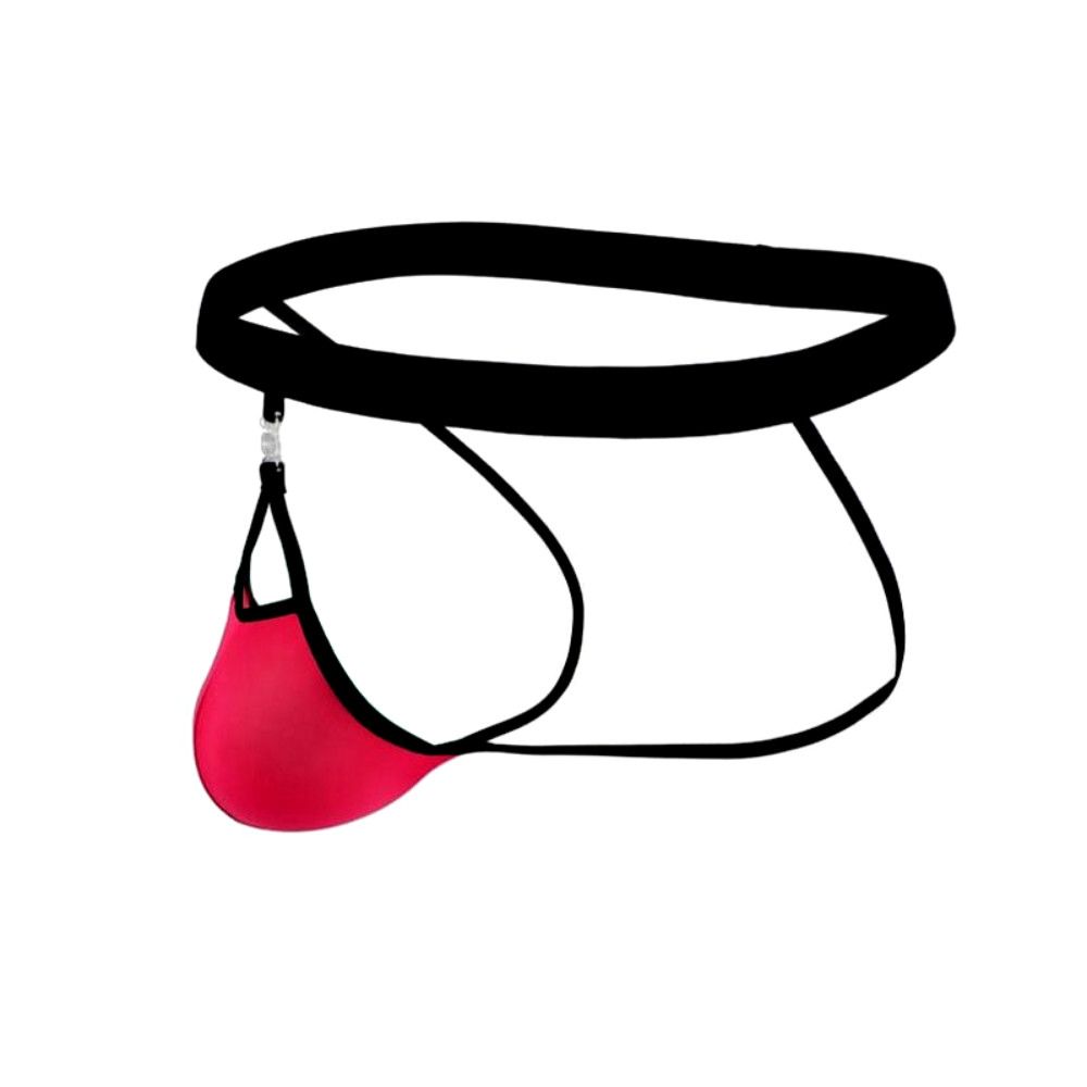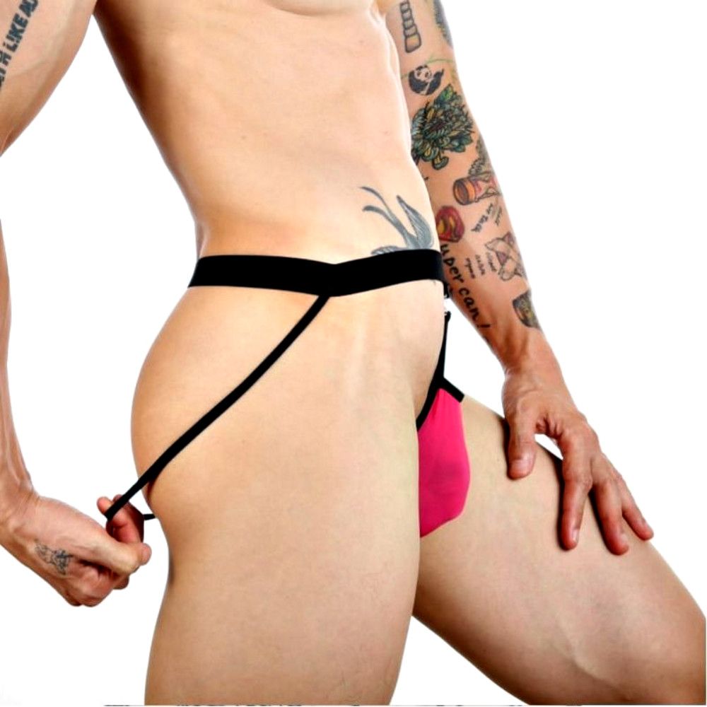 Розовые сексуальные трусы-джоки на тонких черных ремешках.
