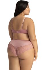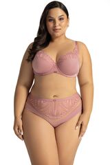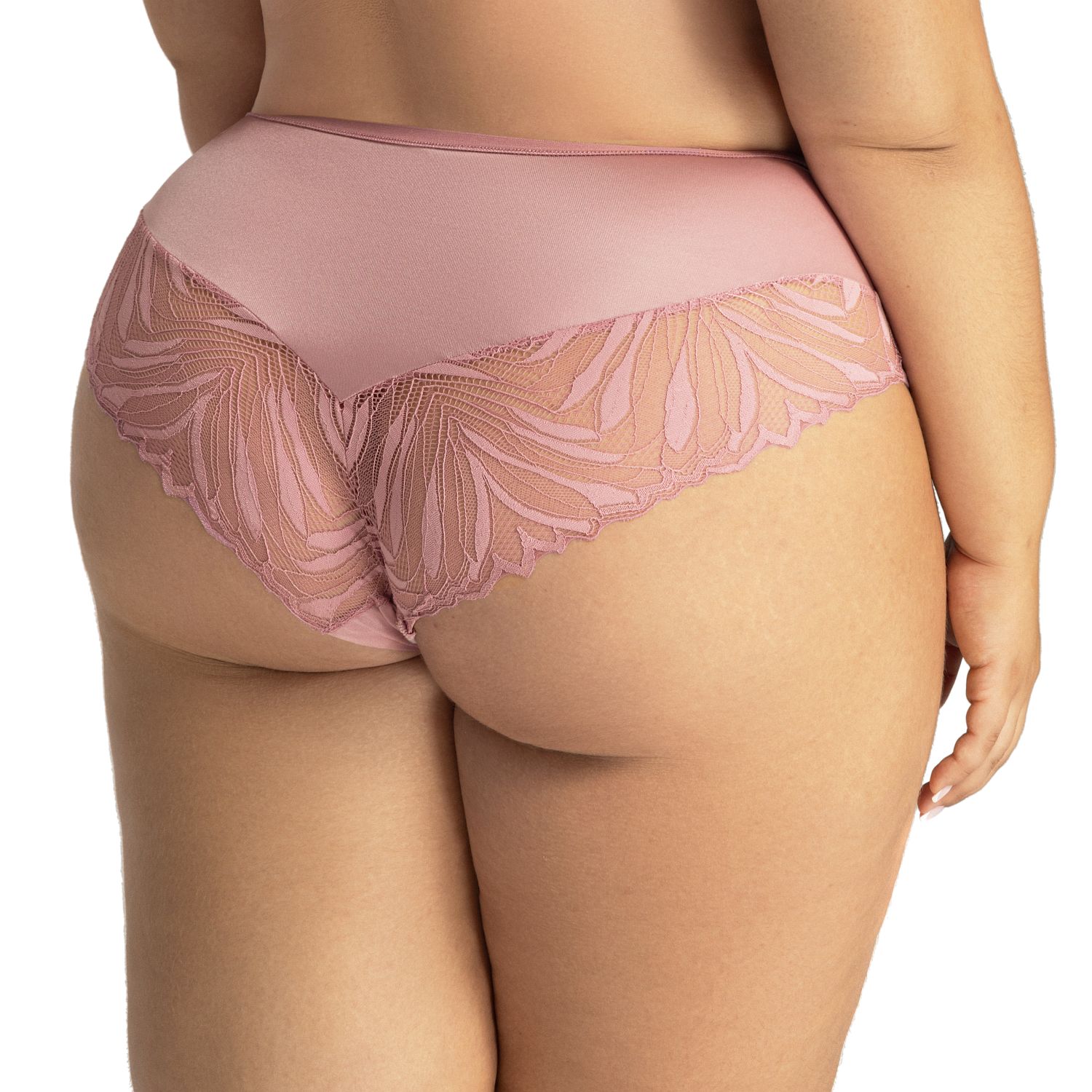 Трусики-слипы со средней линией талии 2106 Yasemin выполнены в цвете pink peony: спинка из эластичного трикотажного полотна и широкого кружева, спереди из трикотажного полотна, продублированного сеткой, со вставками из сетки и кружева. Ластовица проложена 100% хлопком.