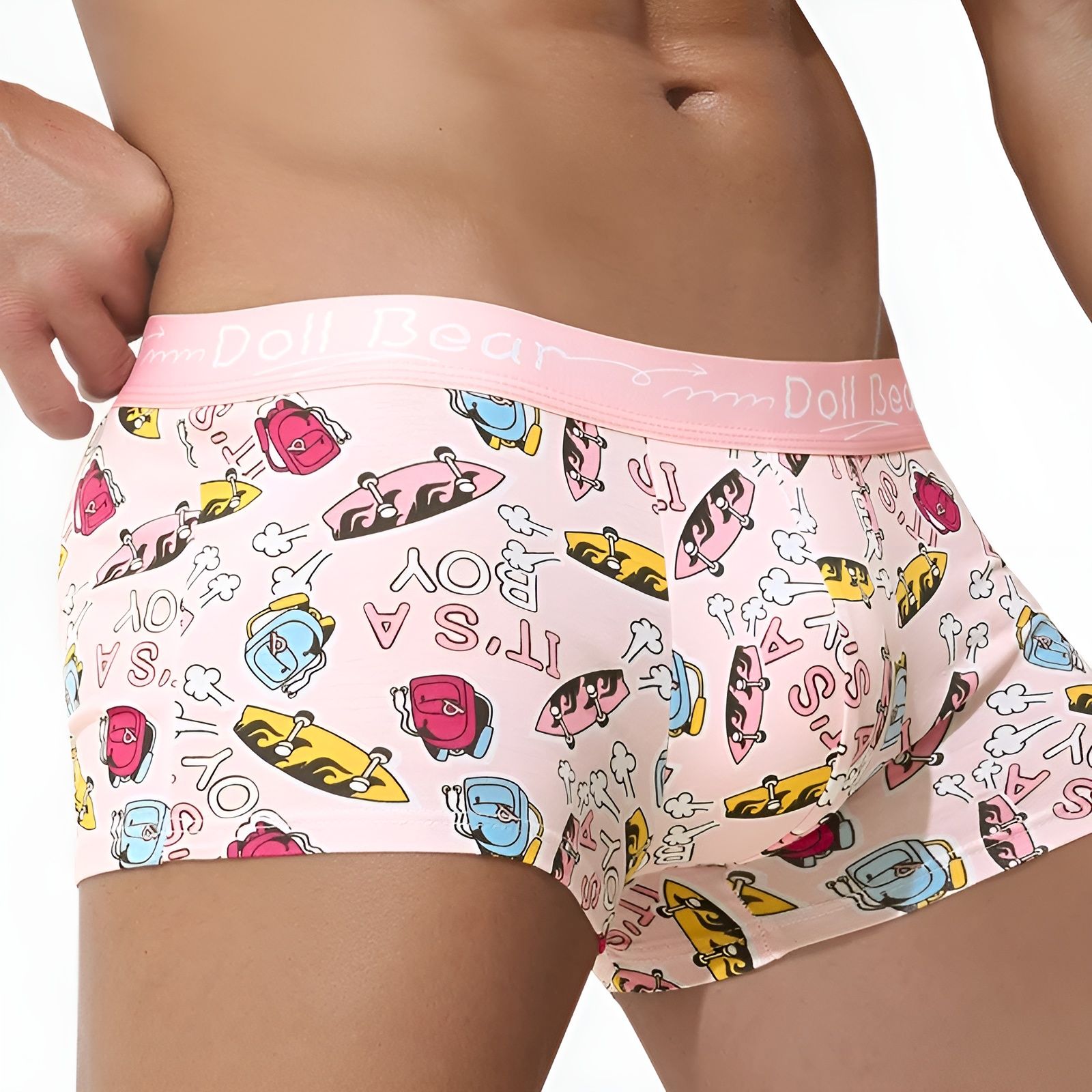 Розовые трусы-боксеры с принтом в виде скейтбордов.