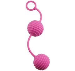 Розовые вагинальные шарики с ребристым рельефом. Приятные на ощупь, из силикона.