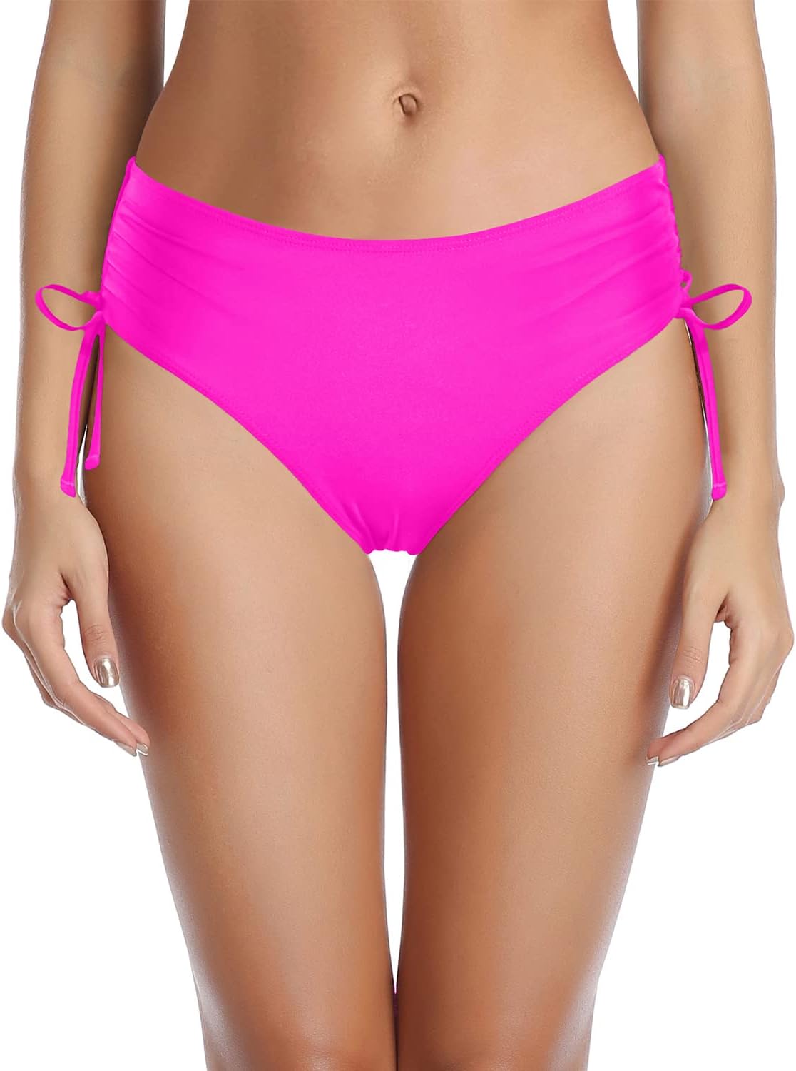 Розовые женские плавки с утяжкой по бокам. Быстросохнущая ткань.
