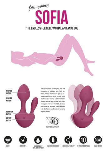 Анально-вагинальный вибратор снабжен двумя мощными моторчиками, все это происходит при очень низком уровне шума. Это чудо имеет 10 скоростей. Изготовлен из медицинского силикона. Перезаряжается от USB. Рабочая длина - 8 см.