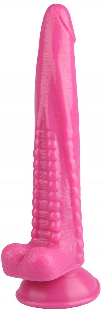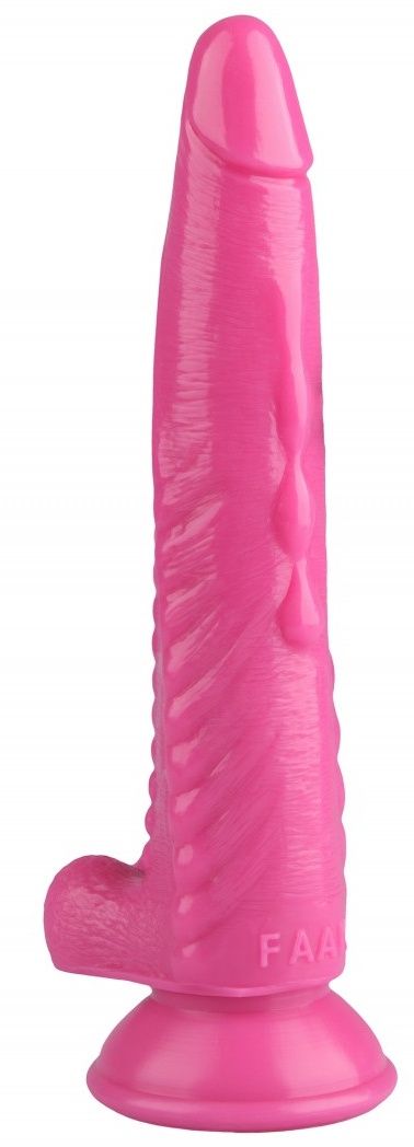 Розовый анальный реалистичный стимулятор на присоске - 25,5 см.
