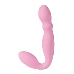 Розовый безремневой вибрострапон. Имеет 11 режимов вибрации. Виброэлементы расположены в обеих частях игрушки.