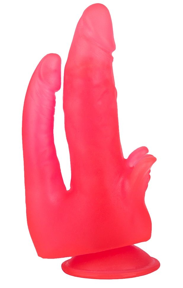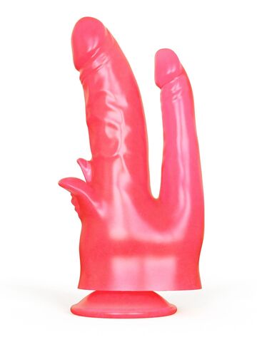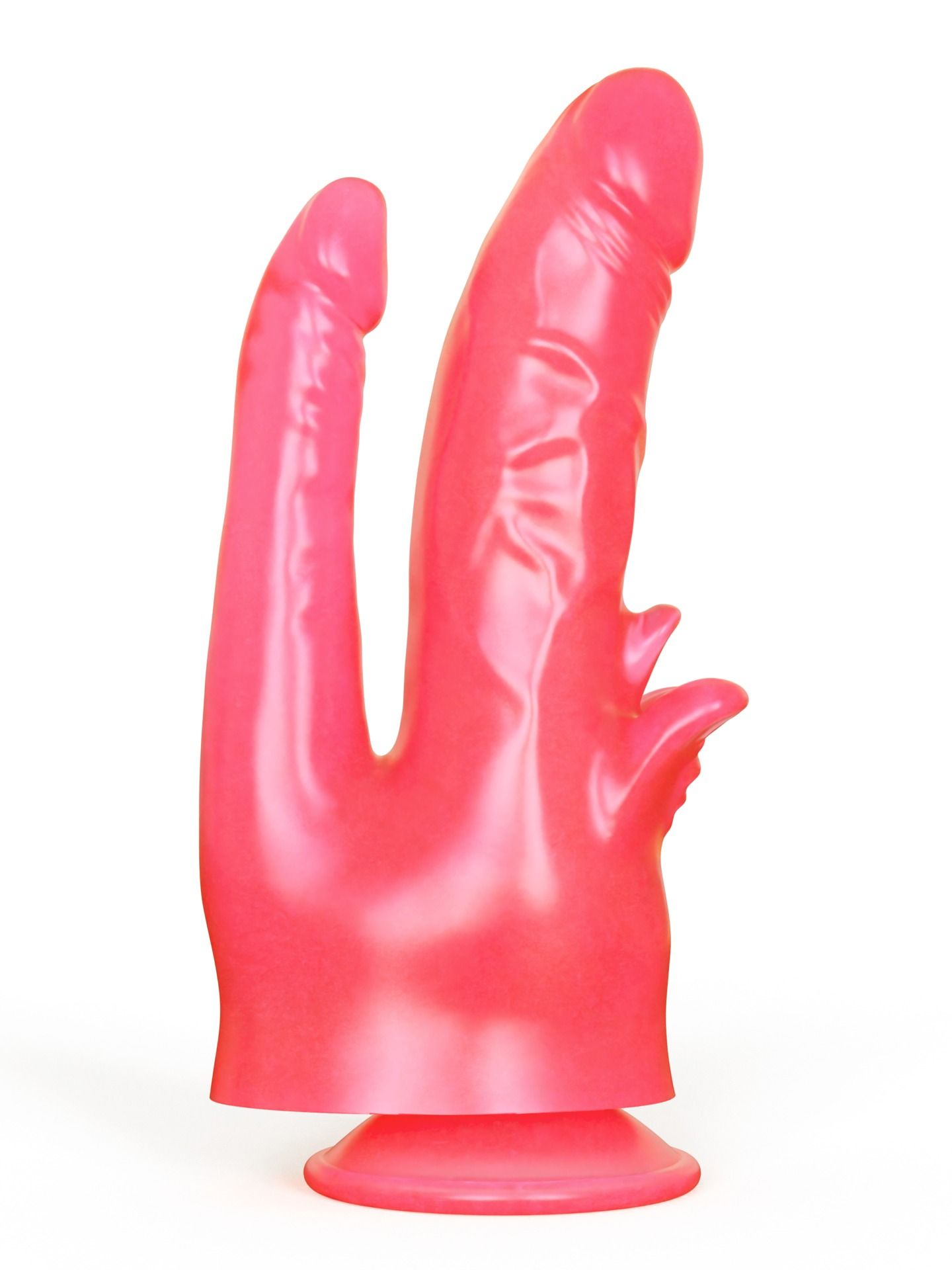 Получить двойное наслаждение проще, чем может показаться. Эта секс-игрушка из бархатистого на ощупь розового геля представляет собой два сросшихся в основании фаллоса.