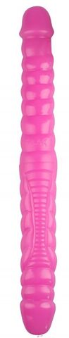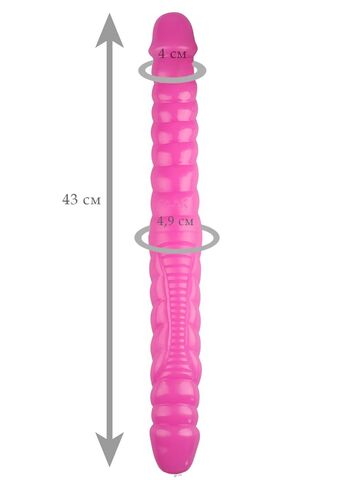 Розовый двухсторонний спиралевидный фаллоимитатор - 43 см.