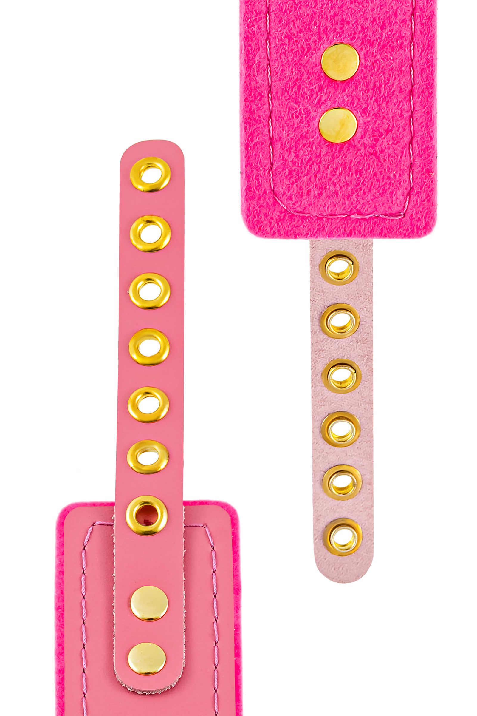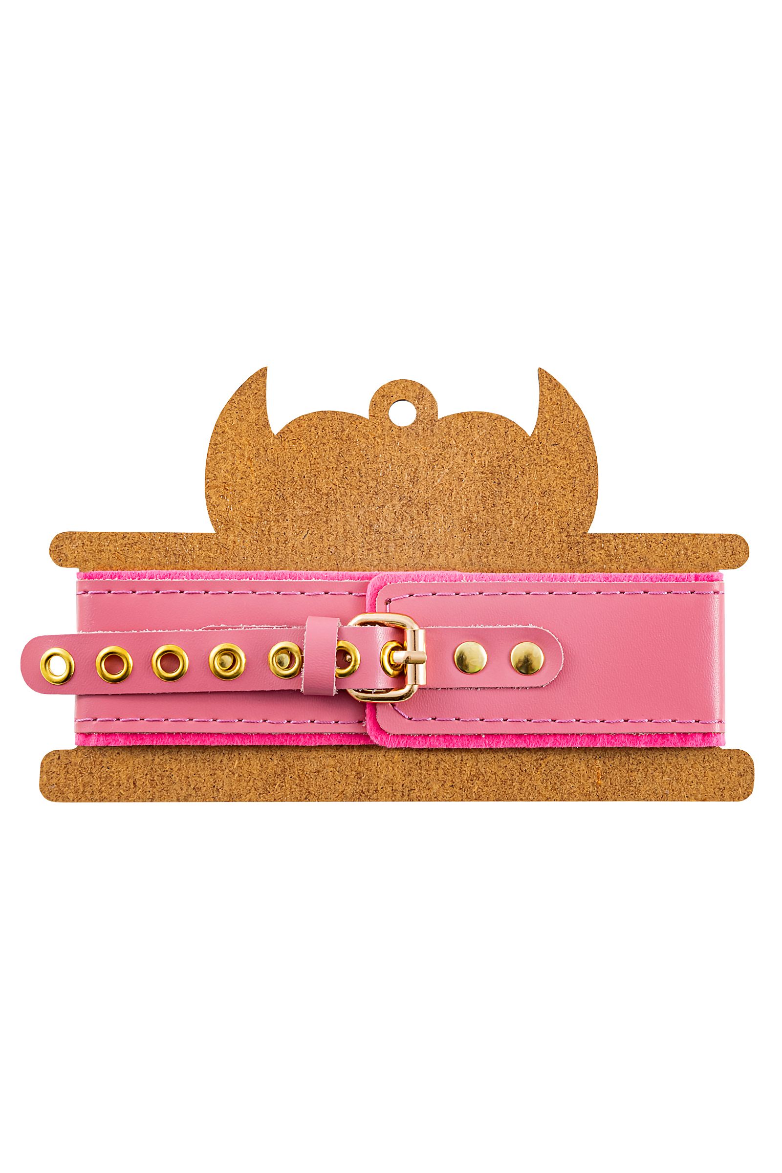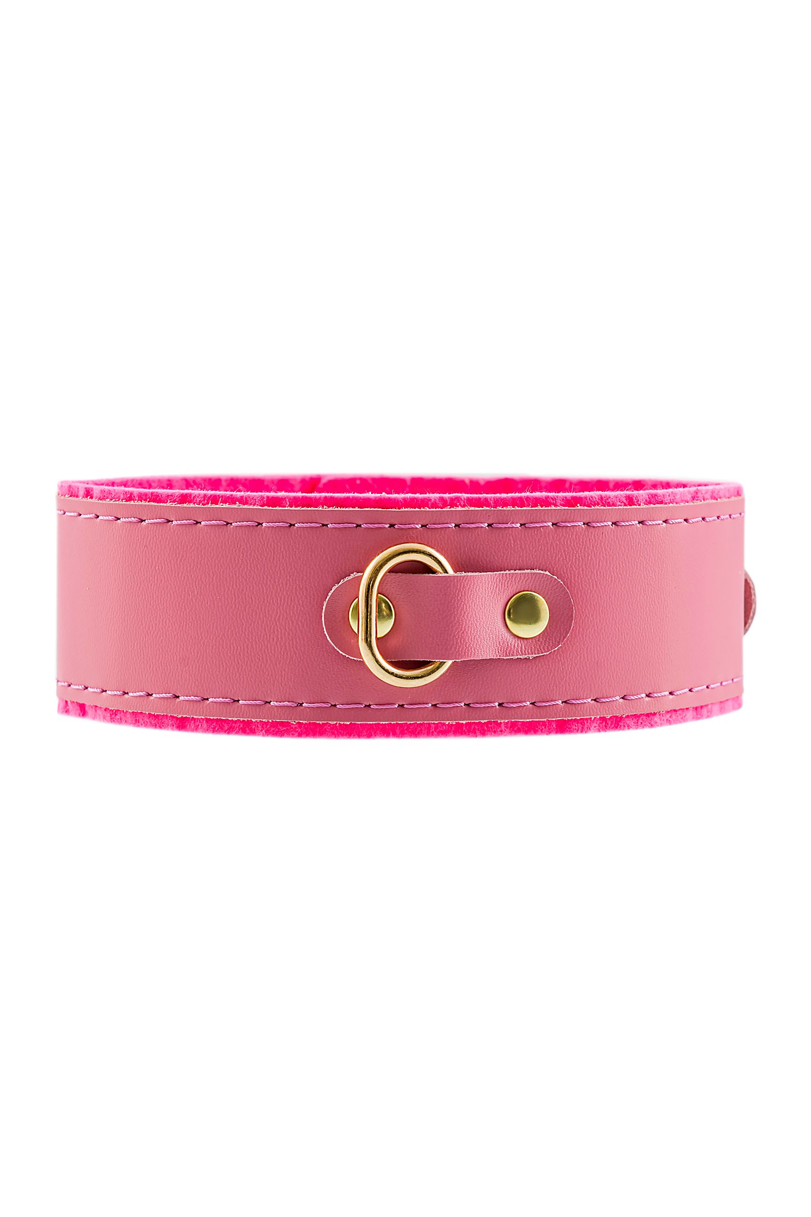 Розовый двуслойный кожаный ошейник с подкладкой из фетра